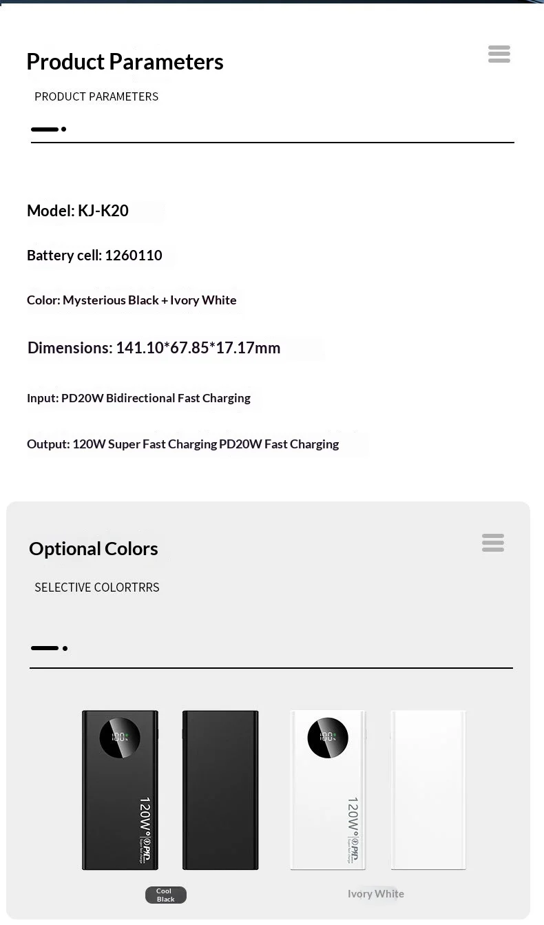 120W supersnelle powerbank met 20000 mAh grote capaciteit, tweeweg snelladen, digitaal display, lithiumbatterij