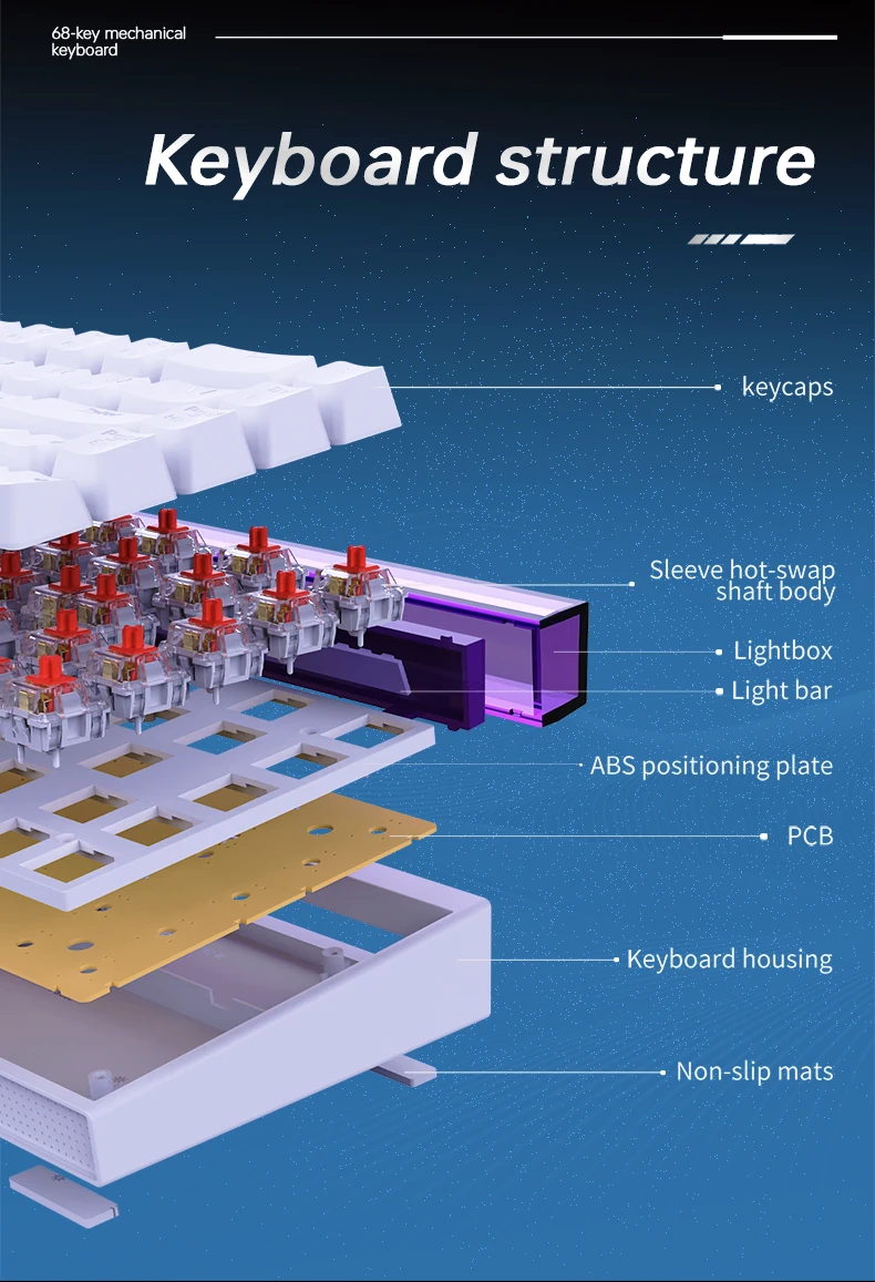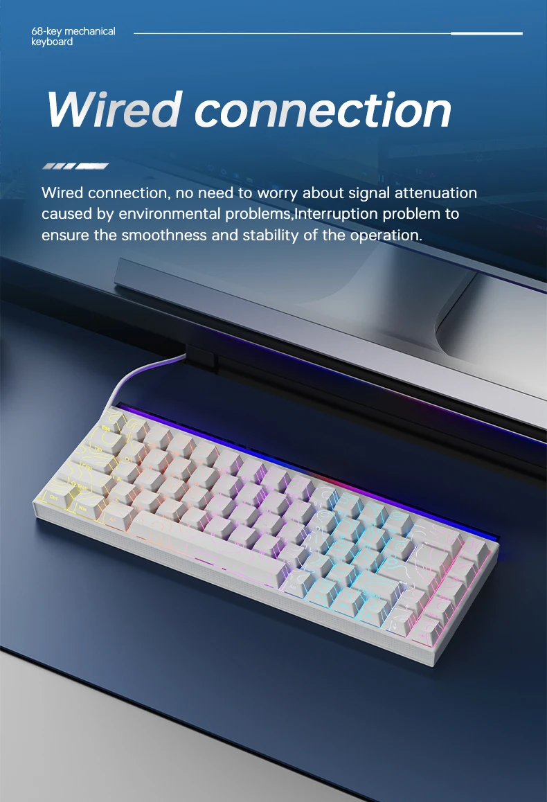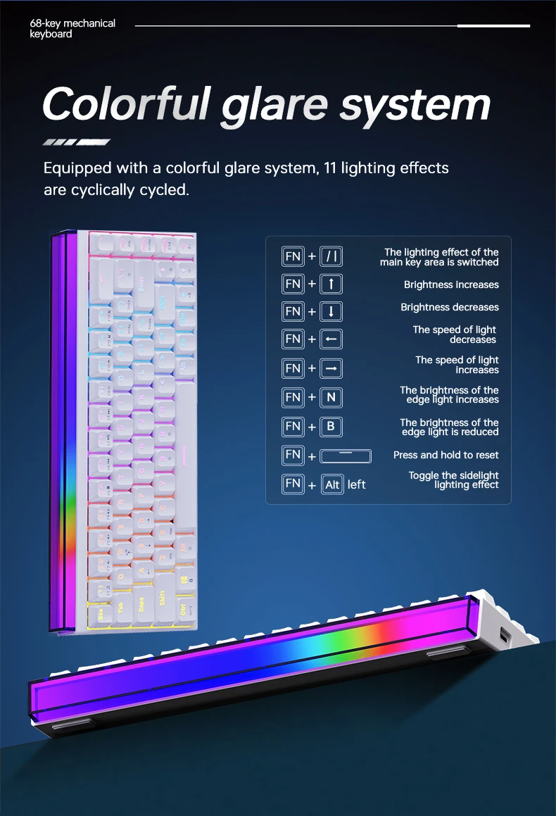 NK68 Side Engraved Contour Wired Mixed Light Mechanical Keyboard Full Keys Hot Swappable